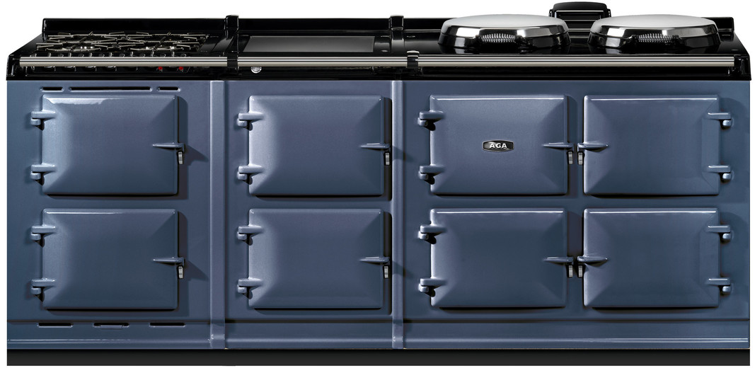 The AGA R7 210 features three ovens for roasting, baking and simmering and offers two hotplates which can be switched on and off independently of the ovens, and each other, and heat up in 10 to 12 minutes.This model offers an additional AGA module and hot cupboard, providing an additional integral grill, fan oven, warming oven and two slow cooking ovens. This model also features a 4-burner gas hob and the choice of either a single-zone induction hob or a warming plate.The cast-iron ovens also feature an Altrashell™ coating, which seals the cast-iron and makes them easier to clean. For further ease, the inner door liners can be removed and placed in a dishwasher.