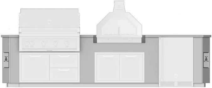 12-foot Outdoor Living Suite with Campania Pizza Oven™ consists of multiple cutouts (appliances sold separately) in a suite to accommodate: 42″ Hestan Built-in Grill, 42″ Hestan Access Door or Drawer/Door Cabinet, 33" Campania Pizza Oven™, 36″ Hestan Storage Drawer, 24″ Hestan Refrigeration Product.