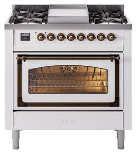 Introducing the new Nostalgie II 36" dual fuel range, a classic addition with a touch of innovation to any kitchen. This range feature sealed burners equipped with total black brass burner that has a non-stick nanotechnological coating, heavy cast iron grates, 3.5 cu. ft. total oven capacity and soft closing door system.Read More
