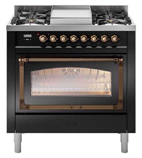 Introducing the new Nostalgie II 36" dual fuel range, a classic addition with a touch of innovation to any kitchen. This range feature sealed burners equipped with total black brass burner that has a non-stick nanotechnological coating, heavy cast iron grates, 3.5 cu. ft. total oven capacity and soft closing door system.Read More